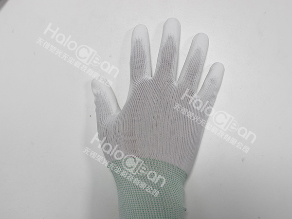 The back of the hand is made of antistatic cloth, and the palm is PU coated on the base. The gloves have good anti-static performance, good elasticity, comfortable and convenient to wear, as well as anti-skid and dust-proof performance.
